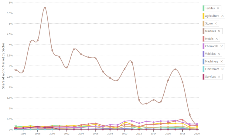 ایران در رتبه بندی شاخص پیچیدگی اقتصادی (ECI) هشتاد و پنجمین کشور پیچیده است. در مقایسه با یک دهه قبل، اقتصاد ایران پیچیده‌تر شده و 11 رتبه در رتبه‌بندی ECI بهبود یافته است. با حرکت رو به جلو، ایران در موقعیتی قرار دارد که از تعداد متوسطی از فرصت ها برای تنوع بخشیدن به تولید خود با استفاده از دانش موجود استفاده کند.