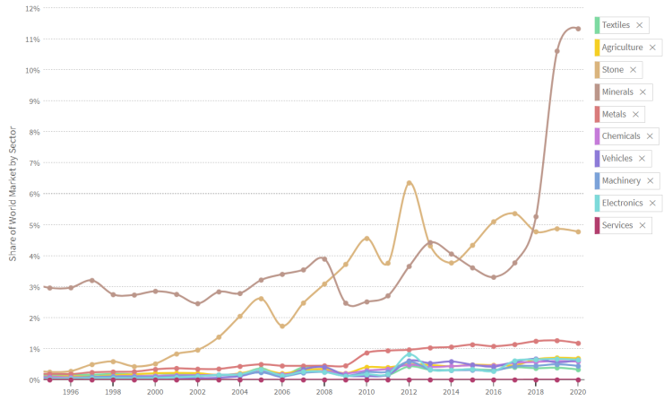 سهم بازار جهانی امارات در طول زمان (1996-2020)